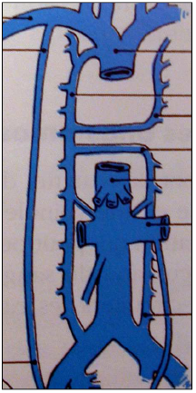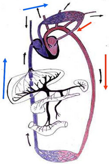 | Systèmes veineux | Système cave Système général avec les veines caves (supérieure et inférieure) et les veines cardiaques se drainant dans l’atrium droit. Le sang transporté est appauvri en oxygène. ![]() Système azygos Il draine le sang issu de la paroi du tronc, notamment au niveau lombaire grâce à une veine azygos et une veine hémi-azygos. Il se jette ensuite dans la veine cave supérieure. ![]() Système Porte Système veineux intercalé entre deux réseaux capillaires. La veine porte relie les organes digestifs au foie et transporte les substances issues de l’absorption. Après traitement par le foie, le sang est ensuite drainé par la veine cave inférieure. ![]() |