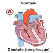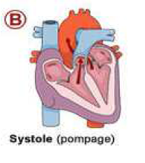 | Les ventricules droit et gauche propulsent le sang de façon synchrone et coordonnée par saccades dans l’artère pulmonaire et l’aorte selon un cycle cardiaque : – La vidange du ventricule rempli de sang se fait par contraction de la paroi sous l’influence du système cardio-necteur et est appelée systole. – Le remplissage du ventricule vide par dilatation qui fait suite est appelé diastole. | |