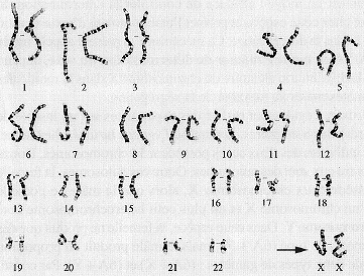 Chromosome métaphasique (suivre l’ordre des 2 dernières lignes de l’image ci-dessus):