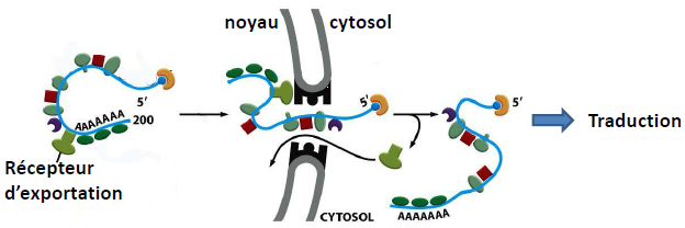 | Exportation de l’ARNm : ARNt et ARNr/Ribosomes utilisent le Ran-GTP. | ![]() |