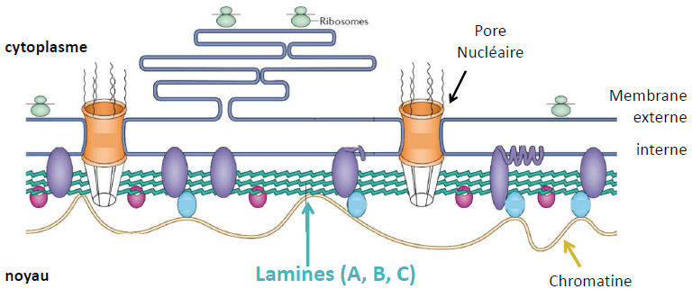 Les lamines sont associées à l’enveloppe par des protéines transmembranaires.