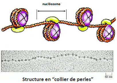 Le nucléofilament : constitué de nucléosomes successifs compactés.