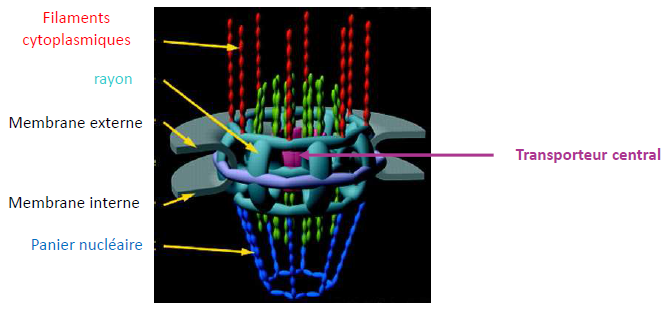 Canal aqueux au travers de l’enveloppe nucléaire pour le passage de certaines molécules du noyau au cytoplasme et inversement.