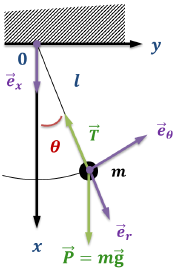 Nous voulons déterminer la fréquence (ou la pulsation ω) naturelle d’oscillation du pendule en nous servant des lois de Newton :