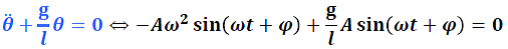 Pour les faibles déviations du pendule par rapport à sa position d’équilibre, l’équation du mouvement d’un pendule simple est déterminée par une équation différentielle du second ordre sans second membre :