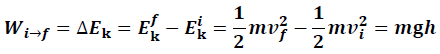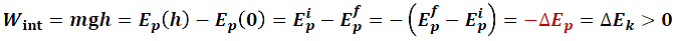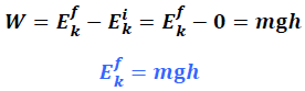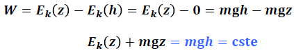 Lors d’une chute libre, Le corps, initialement sans énergie cinétique, a acquis sans interaction extérieure une énergie cinétique égale à la valeur Ek = mgh.