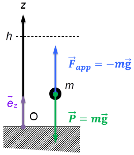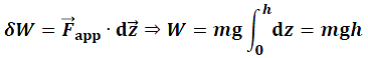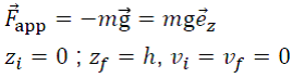 Dans le cas de la force extérieure appliquée au système corps-Terre, le travail ne produit que de l’énergie potentielle :