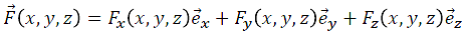 | Deuxième méthode | Pour montrer que la force : dérive d’un potentiel, il faut trouver une fonction scalaire G(x, y, z) tel que les dérivées partielles suivantes soient définies : ![]() Exemple Essayons quand même avec la fonction : ![]() En remplaçant dans (2) : ![]() La fonction f(y) dépend de la variable x ! Il n’existe donc pas de solution à l’équation du gradient. => La force F ne dérive décidément pas d’une énergie potentielle ! |