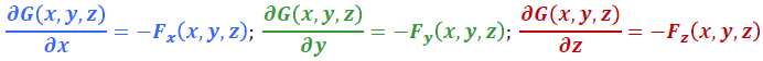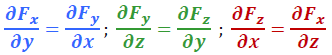 Il est trivial de se convaincre par des considérations de symétrie (x, y et z « jouent » le même rôle) que les deux autres égalités sont satisfaites.