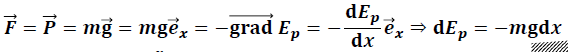 On dit qu’une force dérive d’une énergie potentielle si il existe une fonction scalaire Ep telle que :