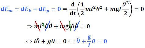 Considérons un pendule et déterminons la pulsation ω naturelle d’oscillation du pendule en nous servant des théorèmes des énergies :