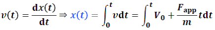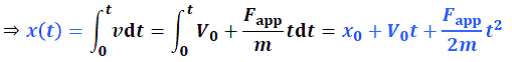 Si x0 est la position initiale, la position de la particule au temps t est :