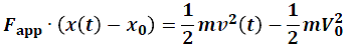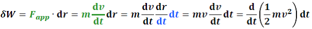 Le terme de gauche représente le travail d’une force appliquée (noté δW ou Wx0→x) sur une particule lors d’un déplacement Δx = x(t) – x0.